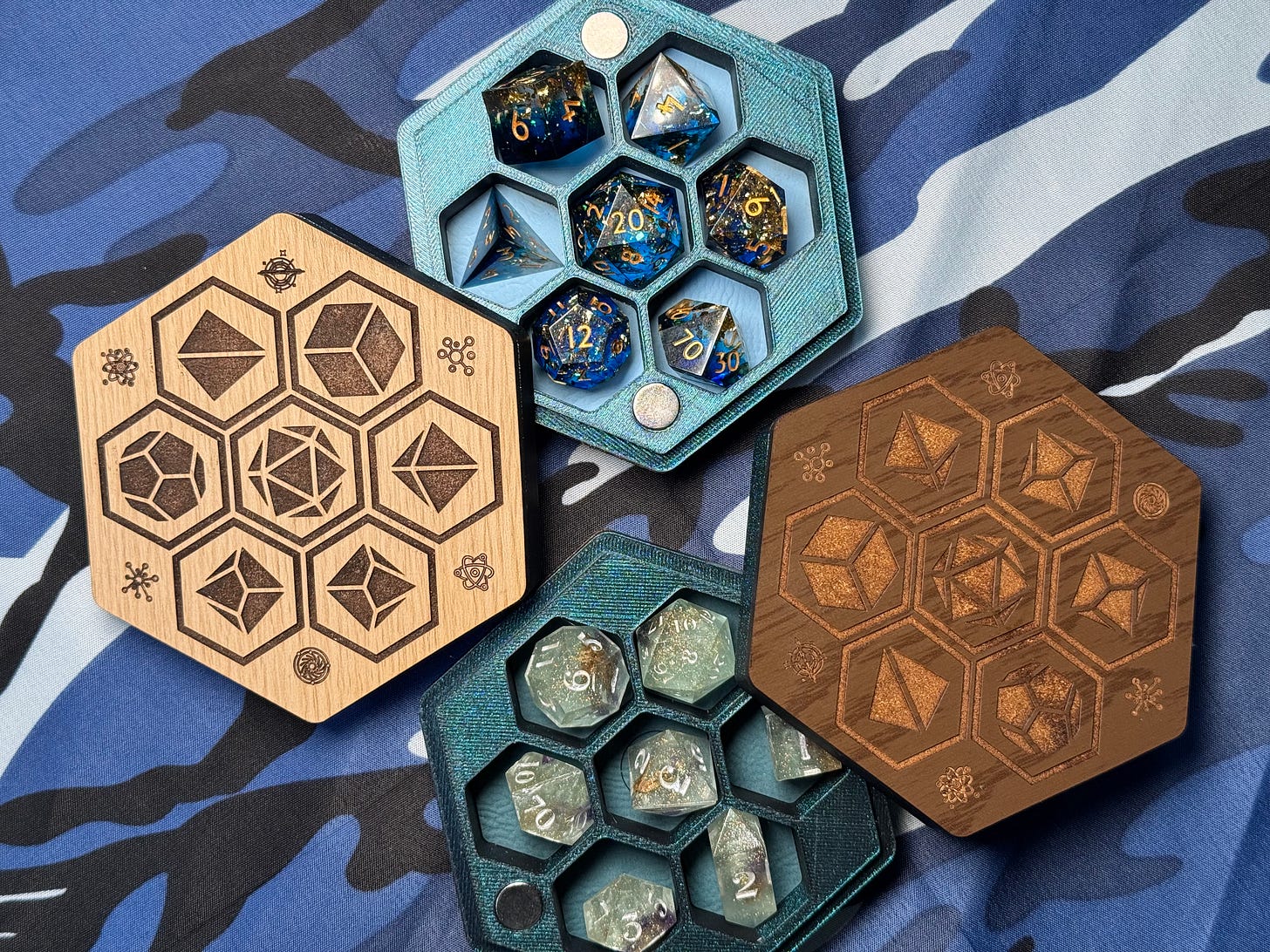 I'm super proud to announce my new, original design: the Stratum Dice Case. As a gamer with a growing collection of beautiful dice, I know that keeping them organized, protected, and ready to go is key. After all, you don't want to be hunting for your lucky D20 when the final boss is one hit away!